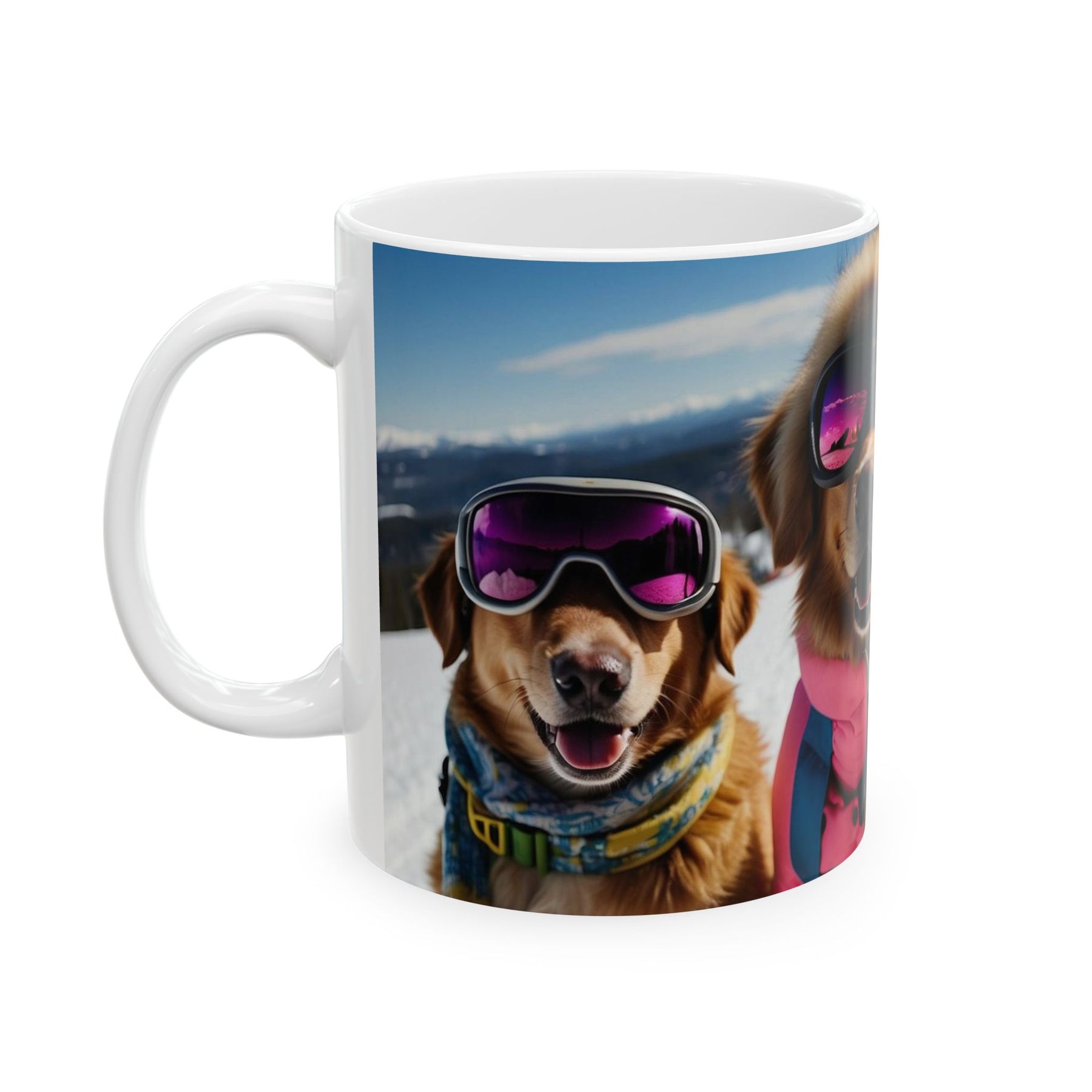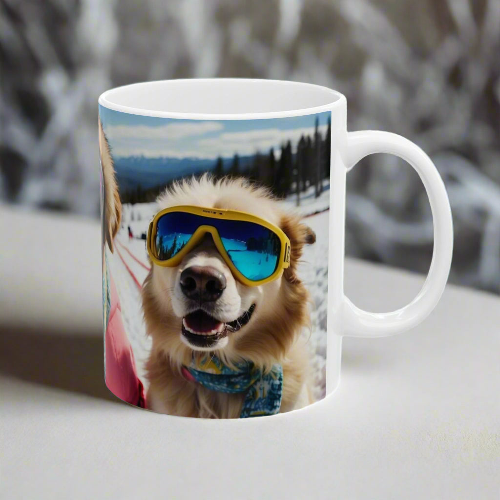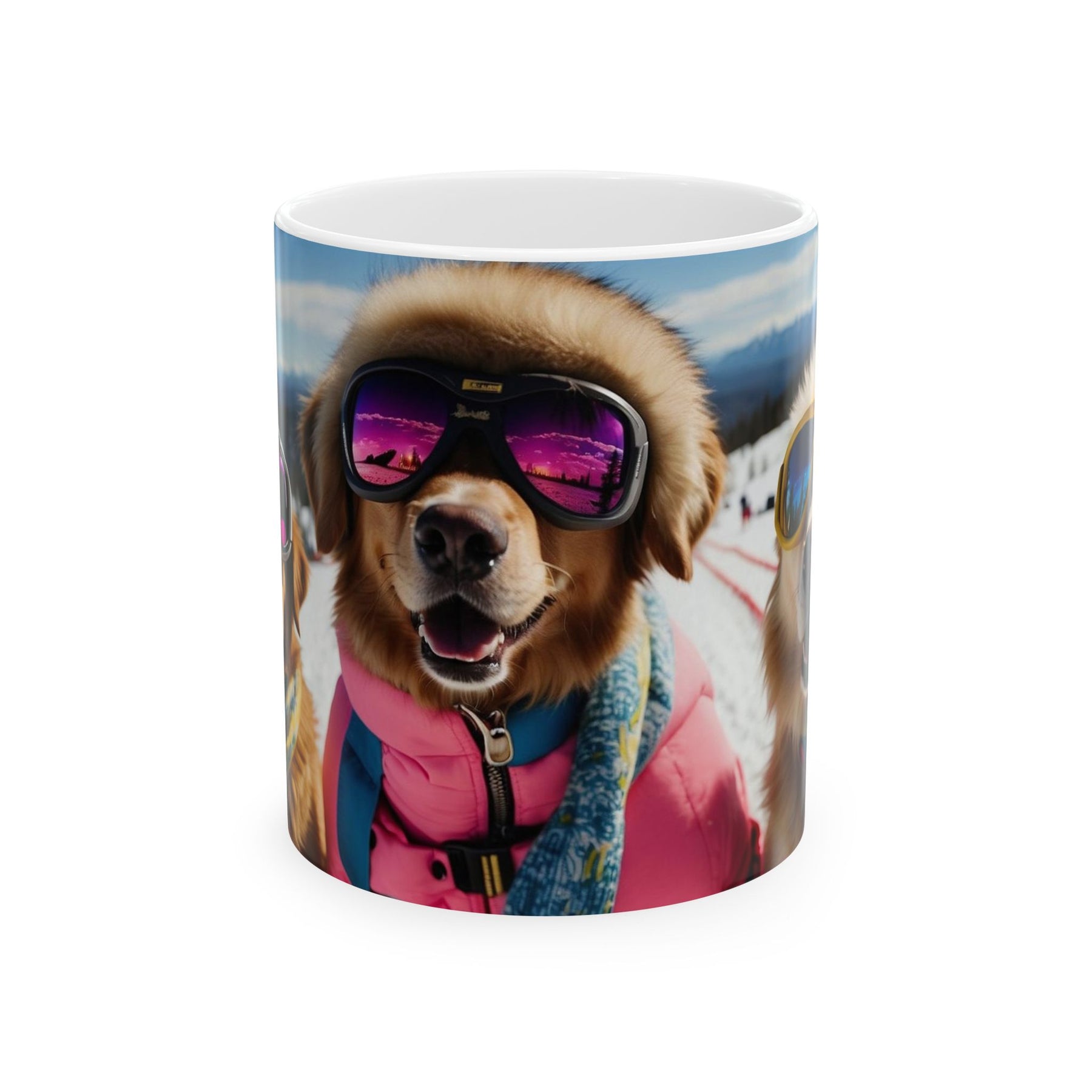 Join the fabulous Golden Girls as they conquer the slopes in style. These fashionable canine companions remind us of the importance of unmatched elegance and panache even while partaking in snowy escapades. Sip in style, this mug is sure to bring a smile to your morning routine.