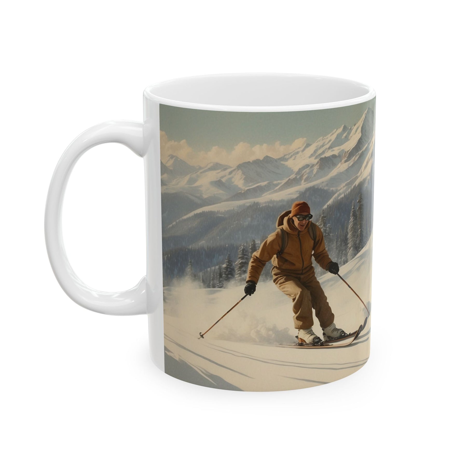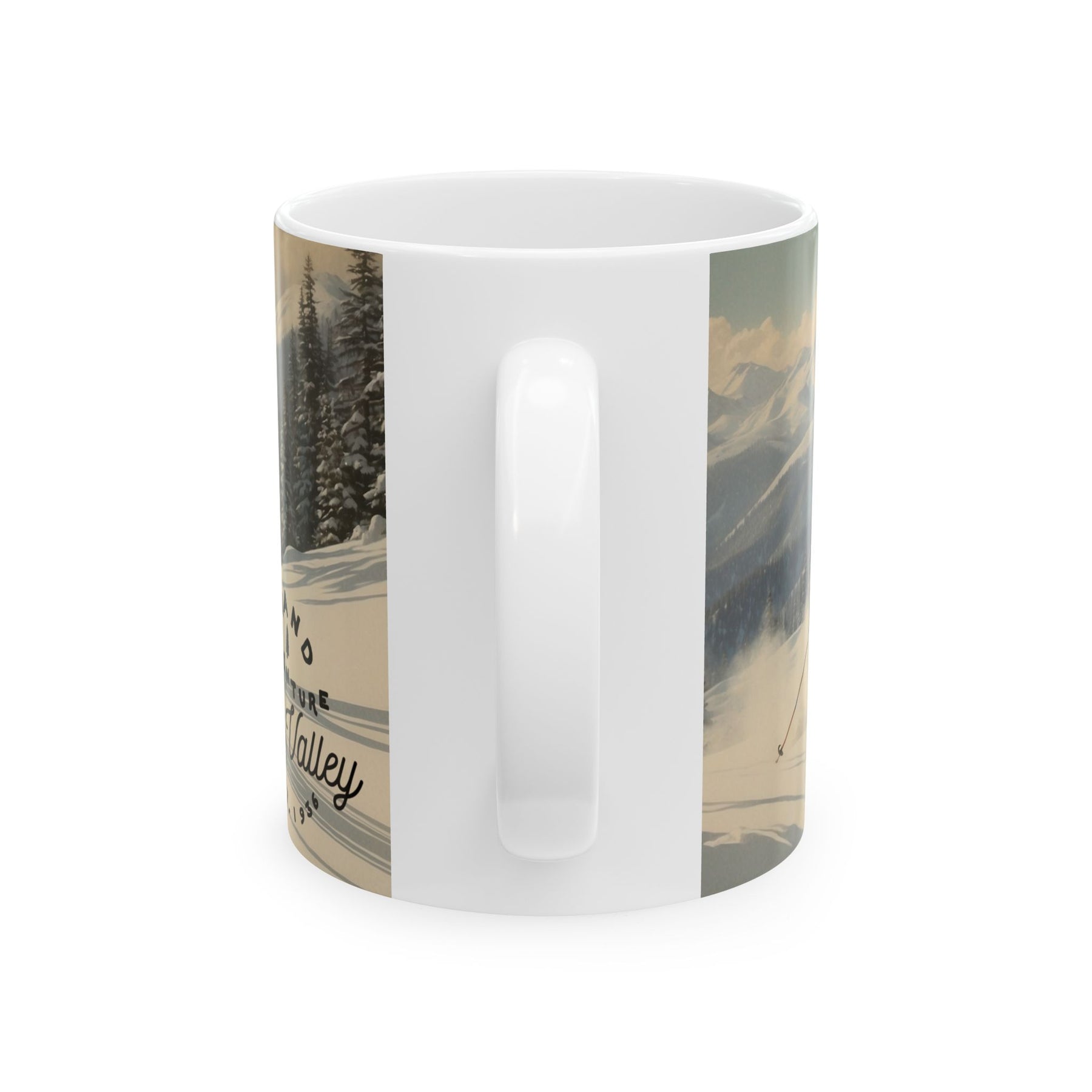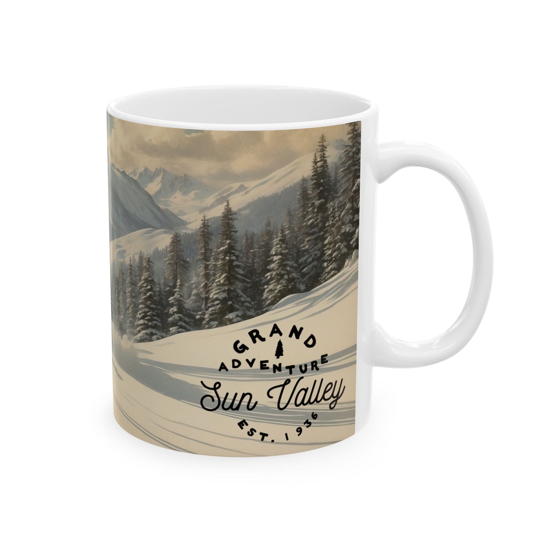 Embark on a grand adventure through the timeless slopes of Sun Valley Ski Resort. This vintage-inspired design transports you to the thrilling moments of a bygone era, capturing the exhilaration of a skier schussing down the slopes amidst the majestic beauty of Sun Valley. The mug encapsulates the essence of a thrilling adventure, the rush wind and the pure joy of descent on the snow-covered mountains of Sun Valley. Ski, sip, repeat!