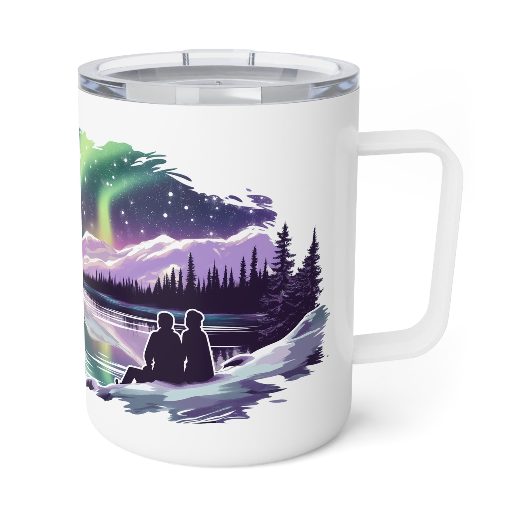 Crafted with love and care, each insulated mug brings this heartfelt scene to life, making every sip of your favorite beverage feel like a warm embrace in the heart of winter. A perfect gift for those who cherish special moments with loved ones or anyone enchanted by the magic of the Aurora. Celebrate the bond between family and nature with Aurora Sip, where each cup tells a story of awe and connection.
