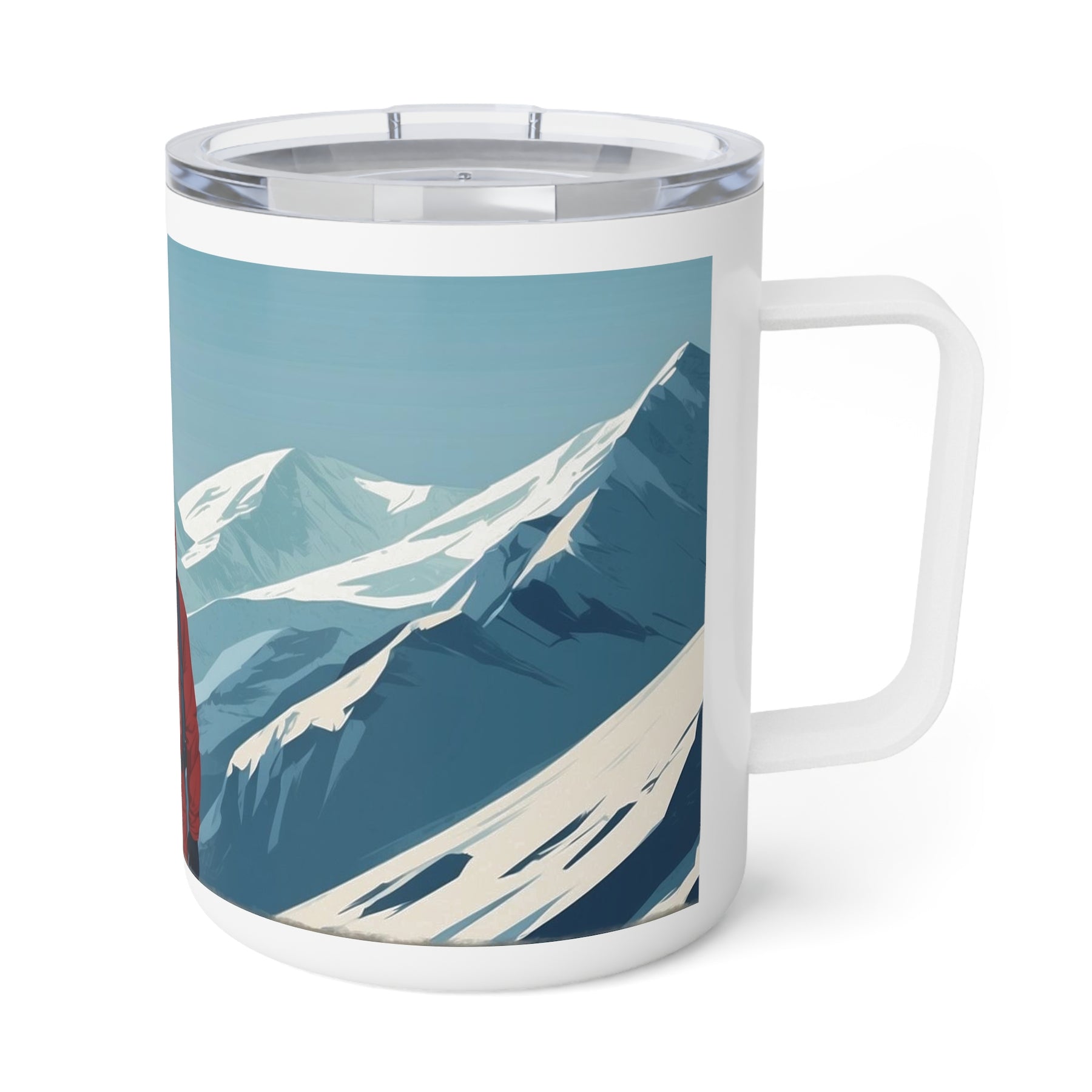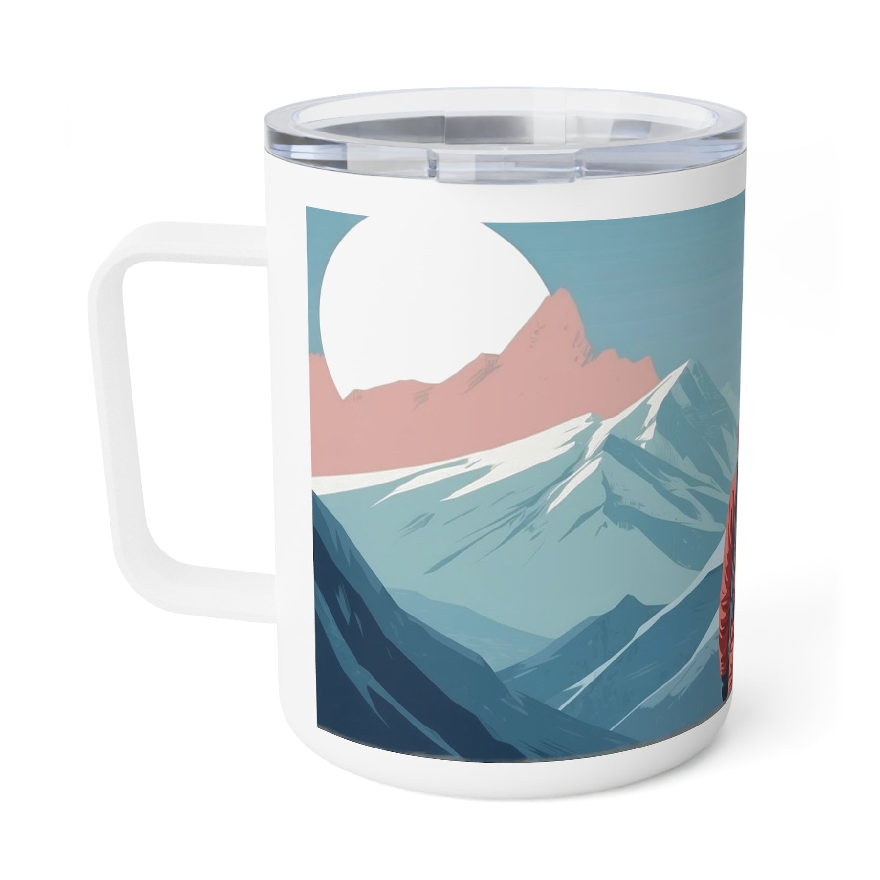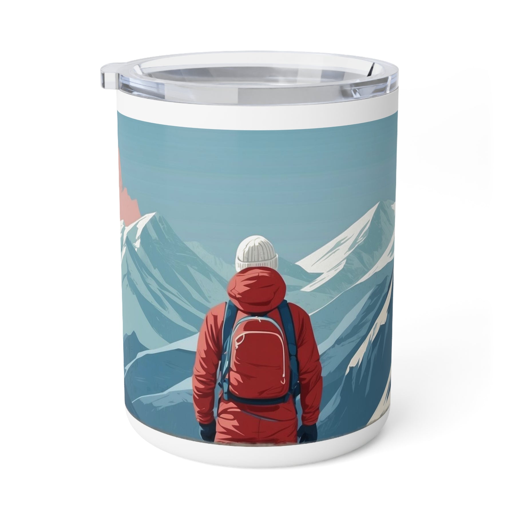 Embark on a visual journey with Summit Vista Voyager, an inspiring addition to our Mountain Explorer collection. This insulated mug captures the essence of a backpacker's reflection, gazing over accomplished heights and anticipating the adventures that lie ahead amidst the mountainous expanse. The design portrays the serene moment when a backpacker takes pause, reflecting on the trails conquered and the endless possibilities that await. Infuse your quiet moments with the spirit of boundless exploration.