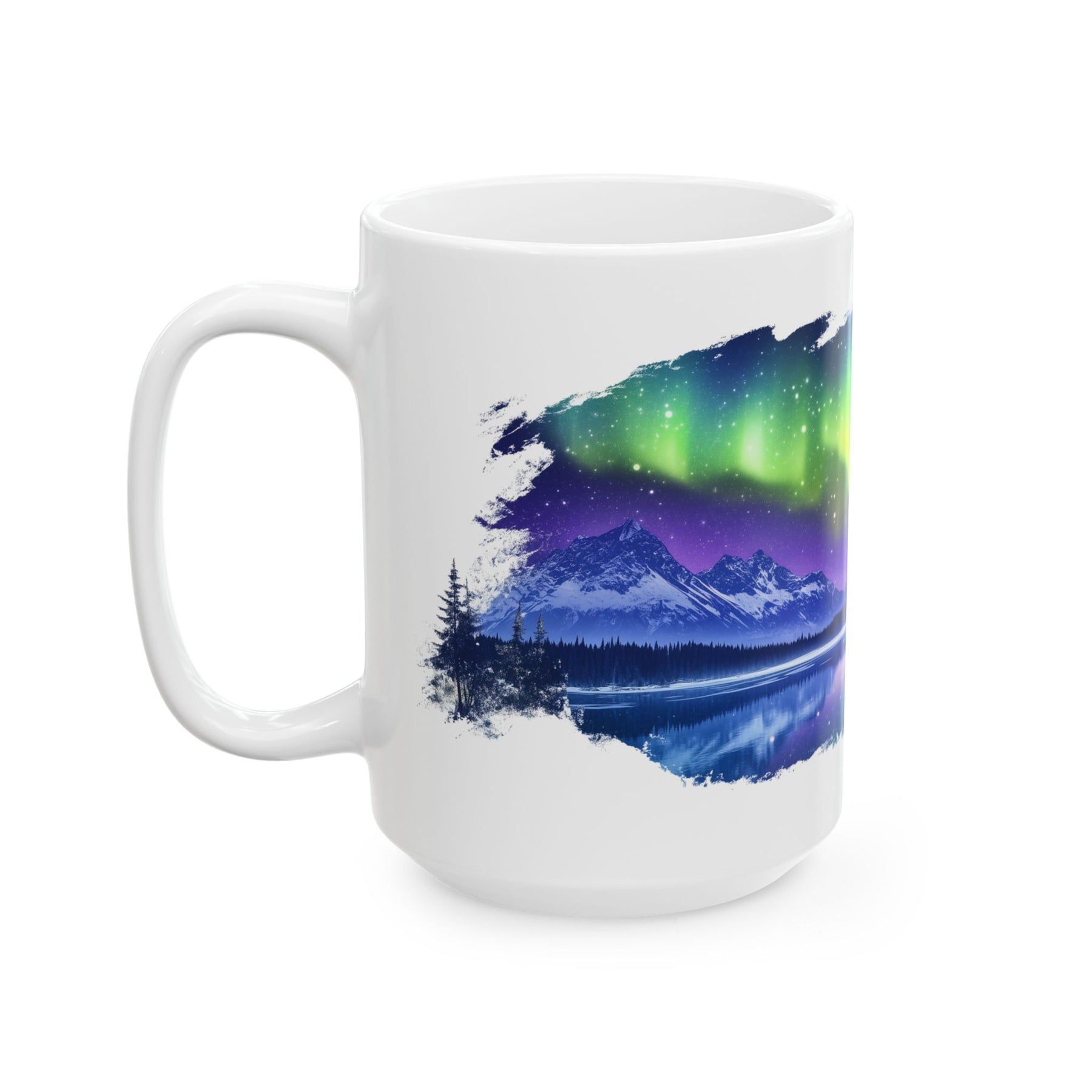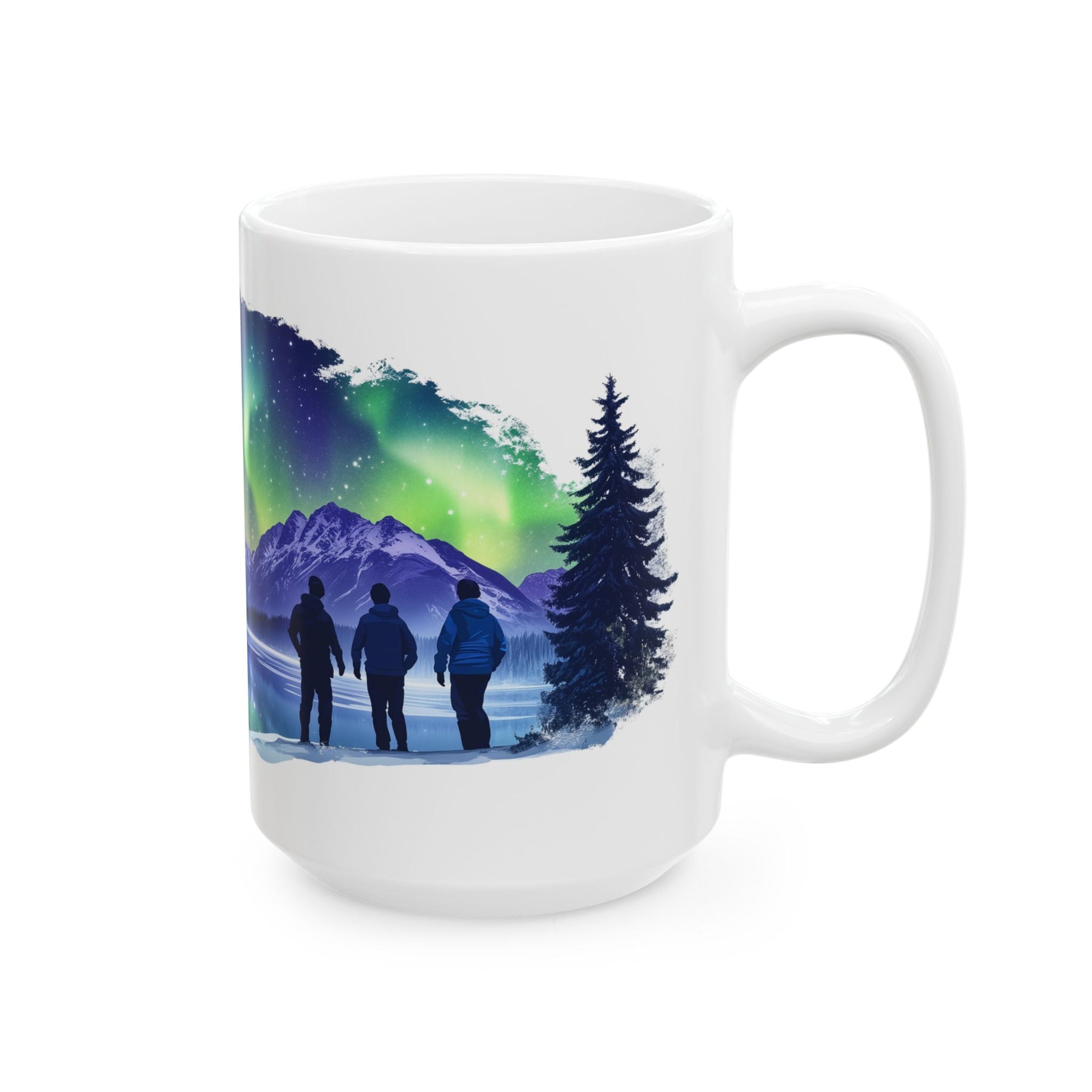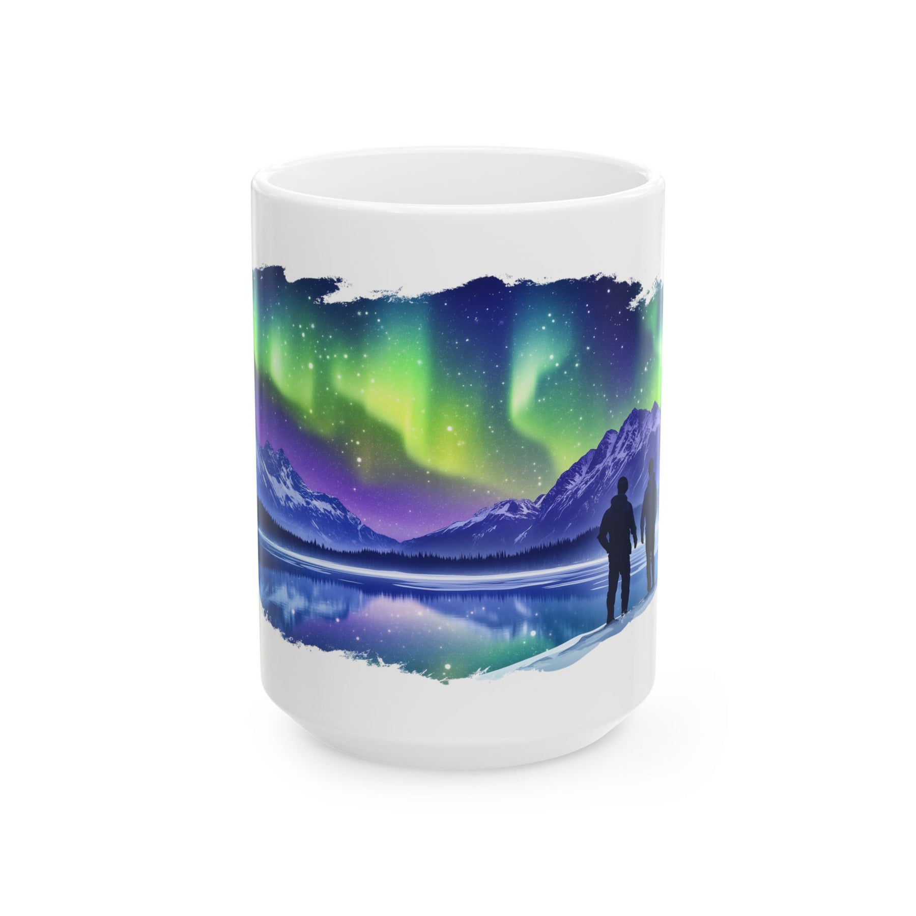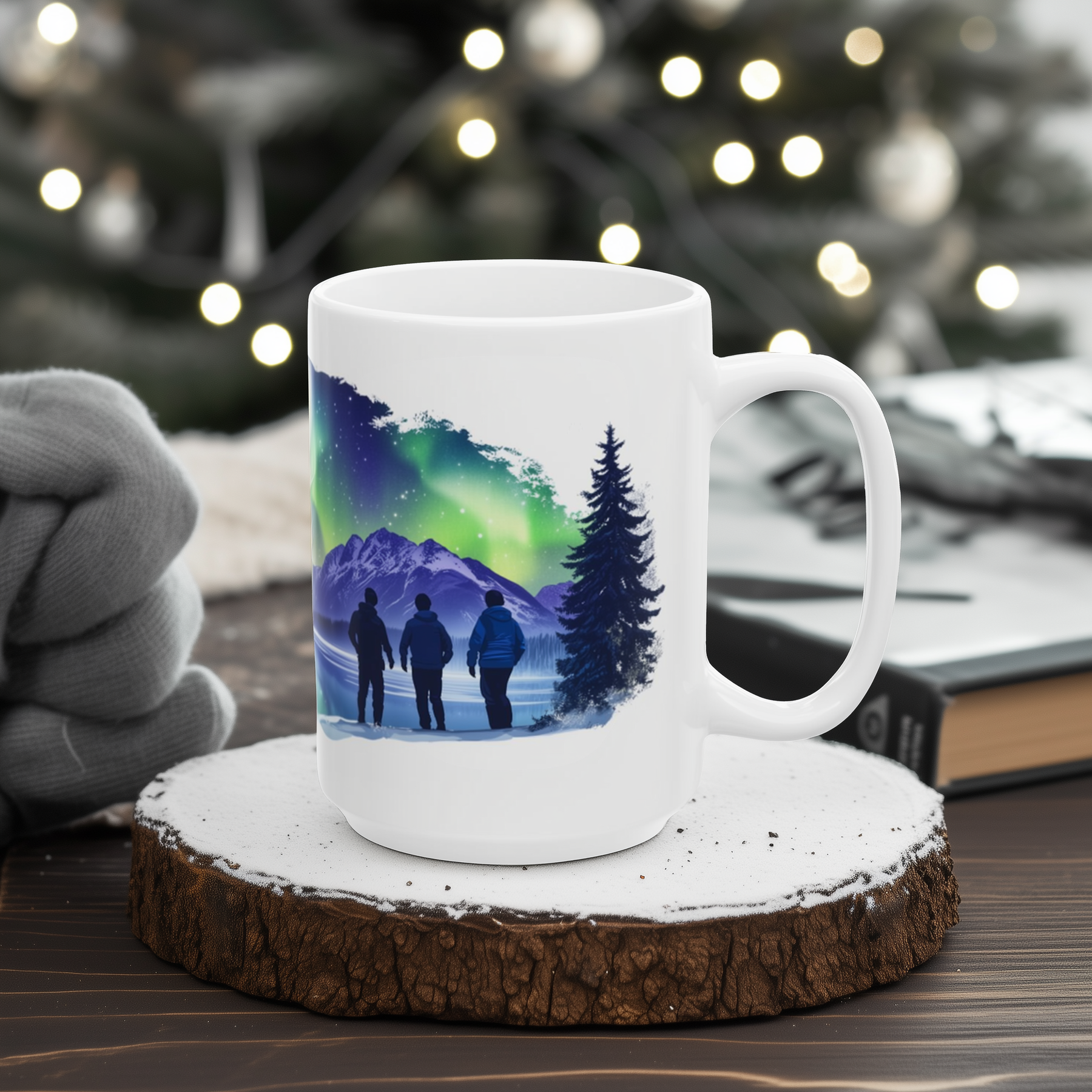 Crafted with love and care, each ceramic mug brings this heartfelt scene to life, making every sip of your favorite beverage feel like a warm embrace in the heart of winter. A perfect gift for those who cherish special moments with loved ones or anyone enchanted by the magic of the Aurora. Celebrate the bond between family and nature with Aurora Sip, where each cup tells a story of awe and connection.
