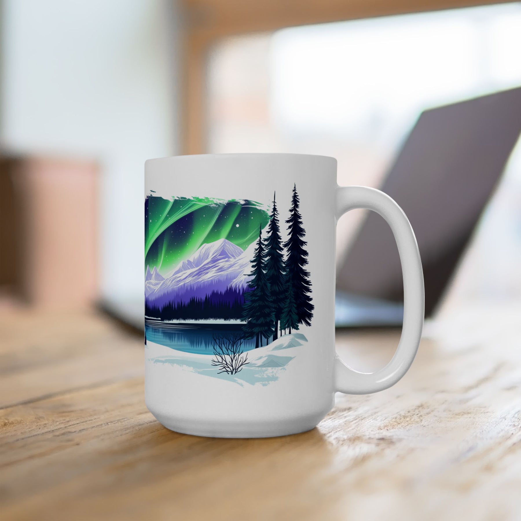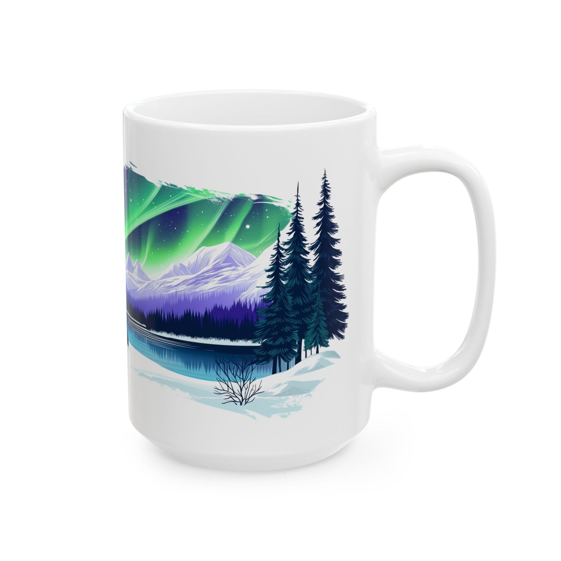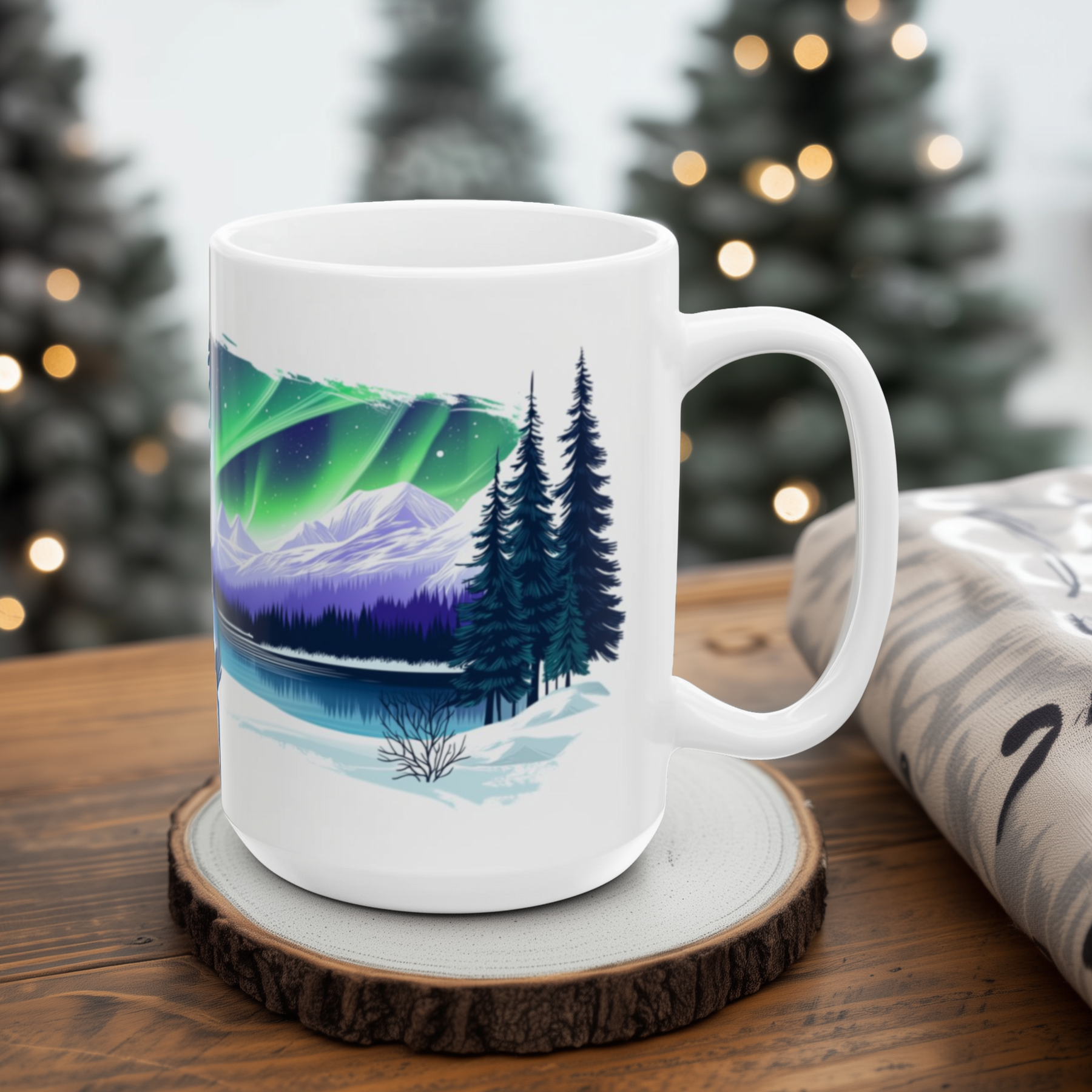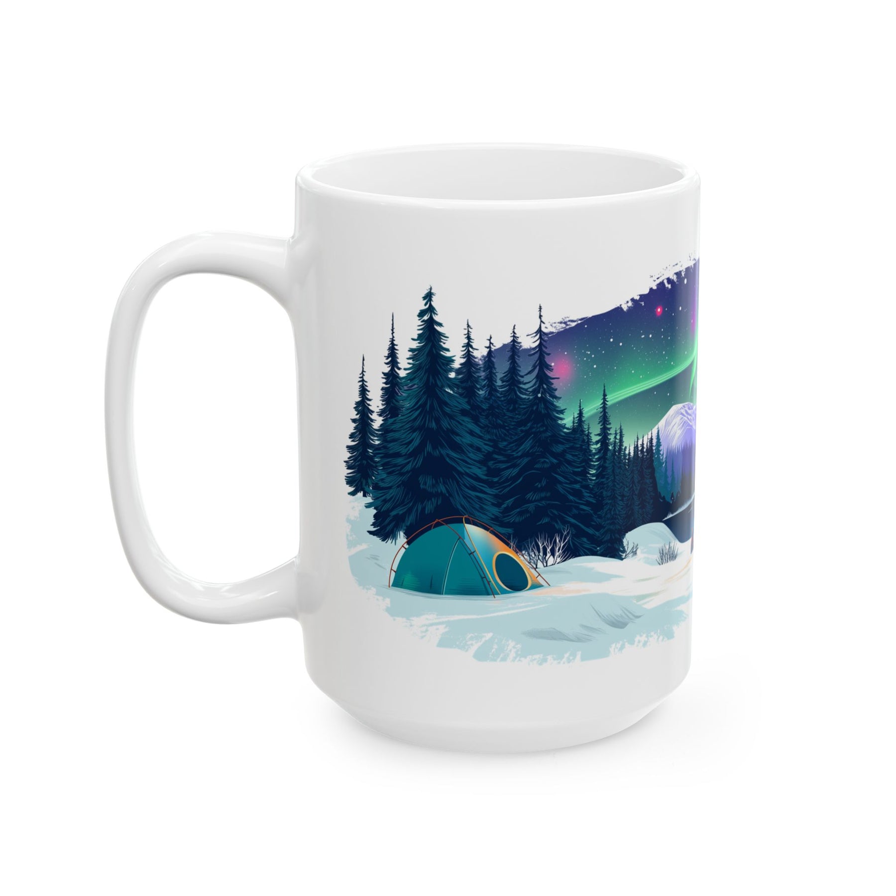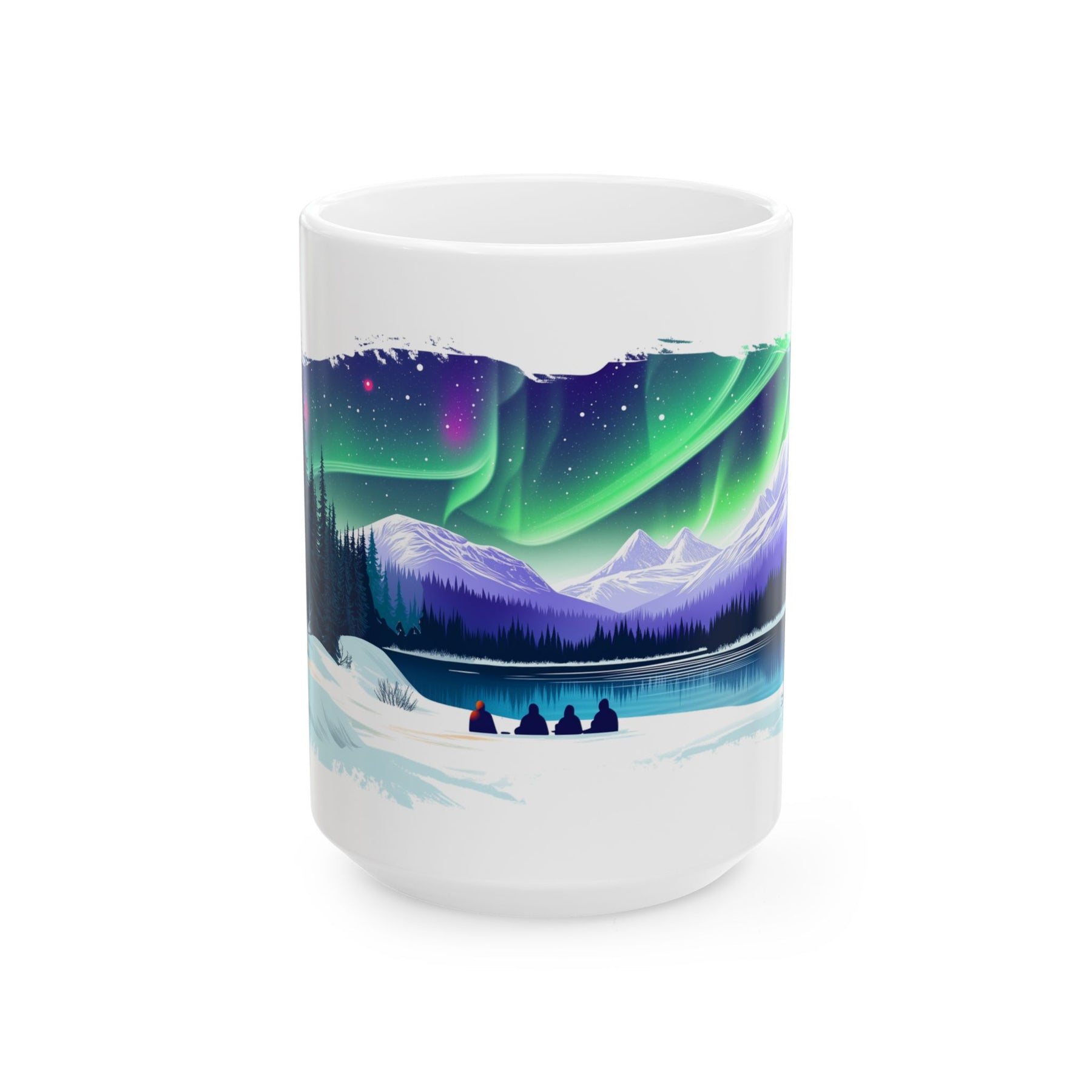 Crafted with love and care, each ceramic mug brings this heartfelt scene to life, making every sip of your favorite beverage feel like a warm embrace in the heart of winter. A perfect gift for those who cherish special moments with loved ones or anyone enchanted by the magic of the Aurora. Celebrate the bond between family and nature with Aurora Sip, where each cup tells a story of awe and connection.