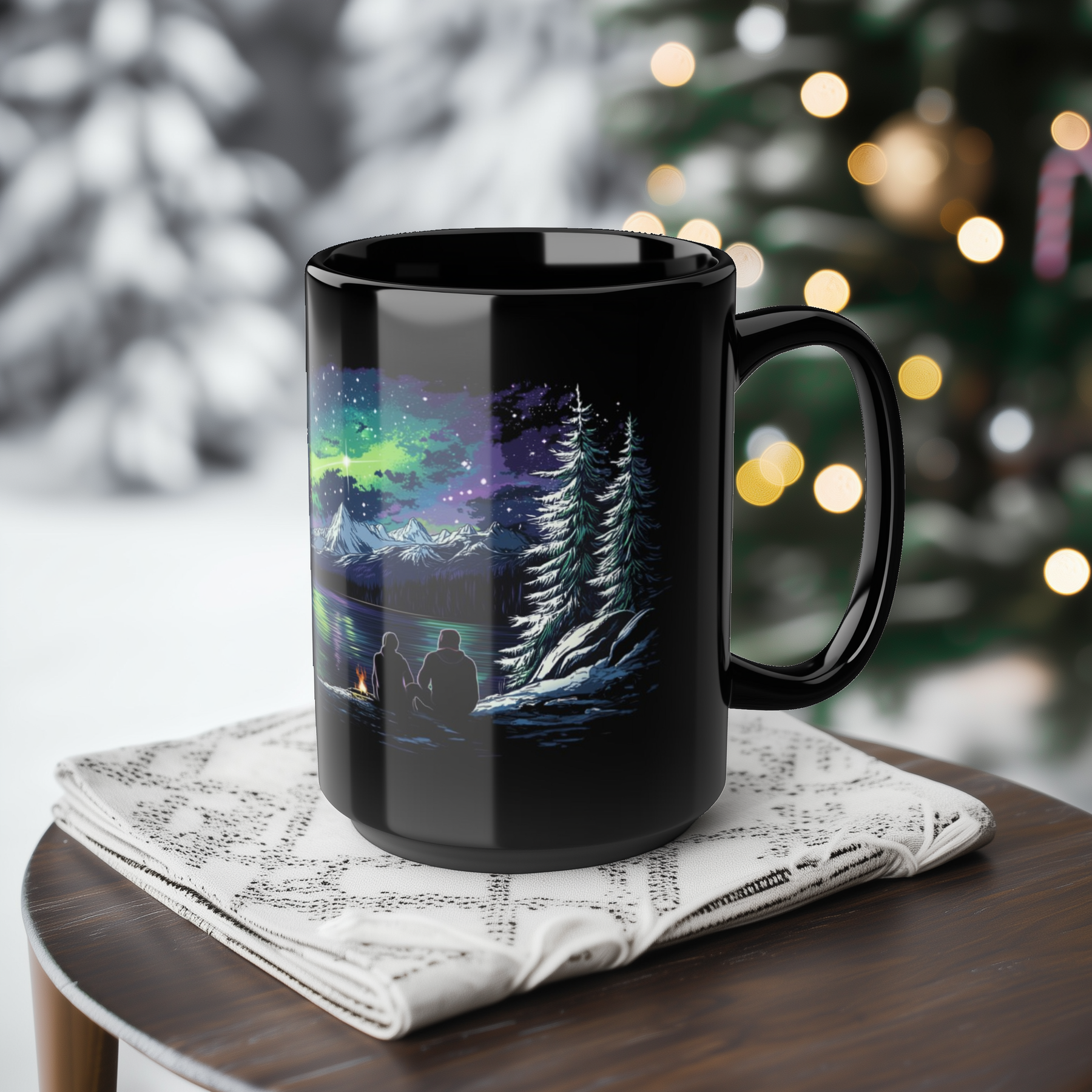 Bring the magic of the Arctic wilderness to your morning routine with a mug from our "Nordic Nights" collection. Featuring a breathtaking scenes of snow-dusted evergreens, serene mountain peaks, and the ethereal dance of the Northern Lights reflected over a tranquil, icy lakes, this design transports you to a world of wonder with every sip. The captivating hues of purple and green lights shimmer against a star-filled sky, evoking the peaceful and mystical atmosphere of the great outdoors.