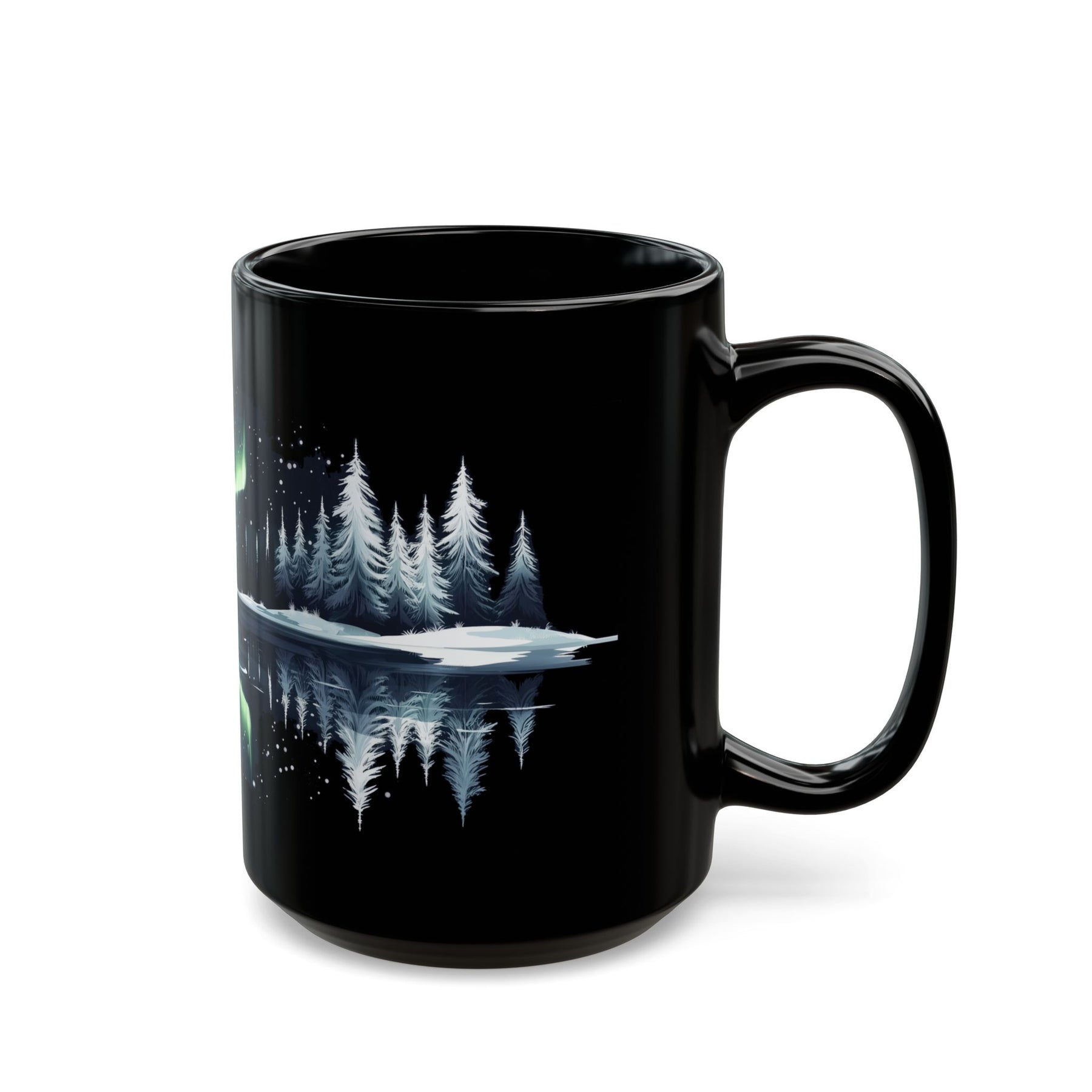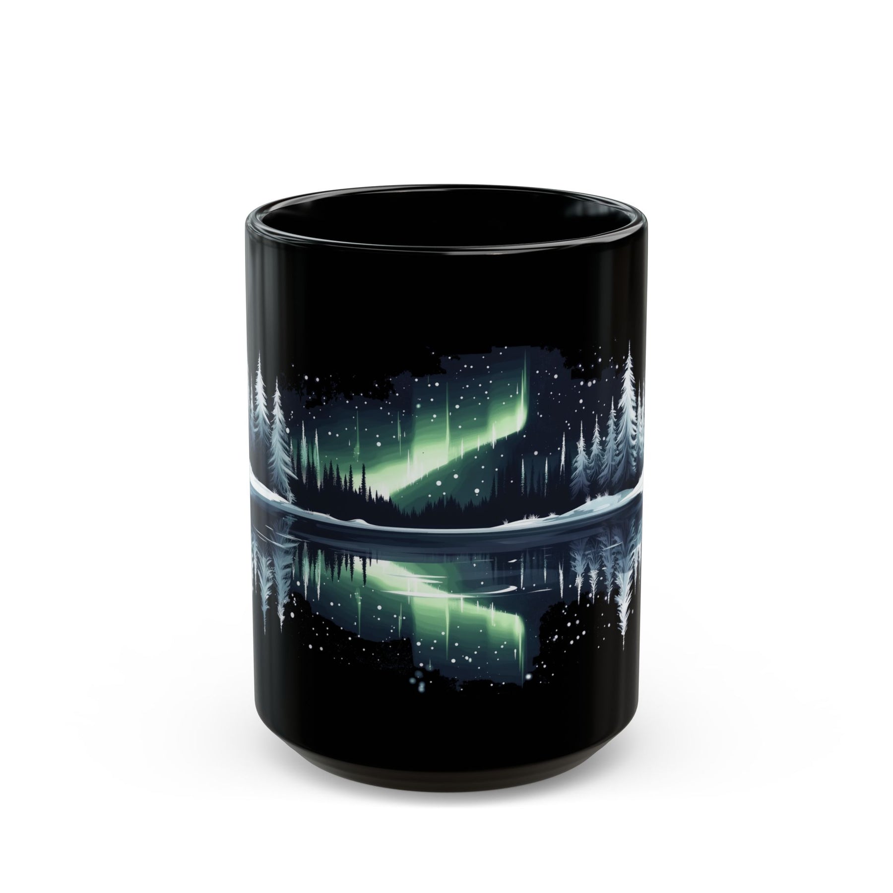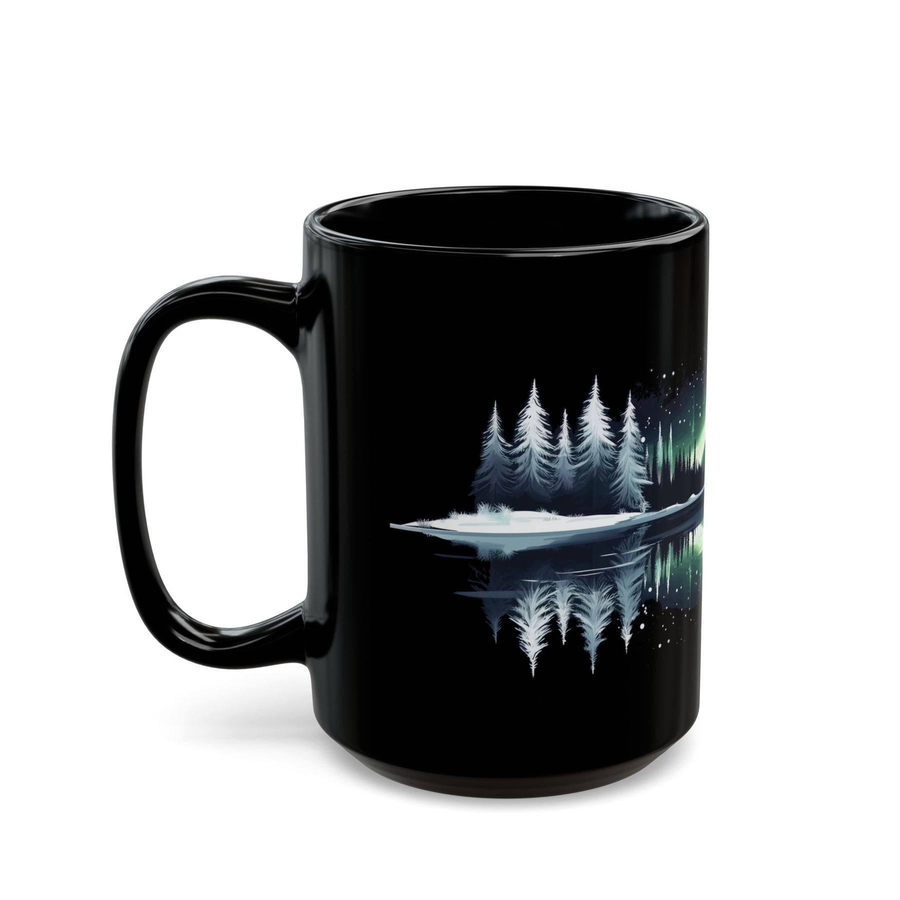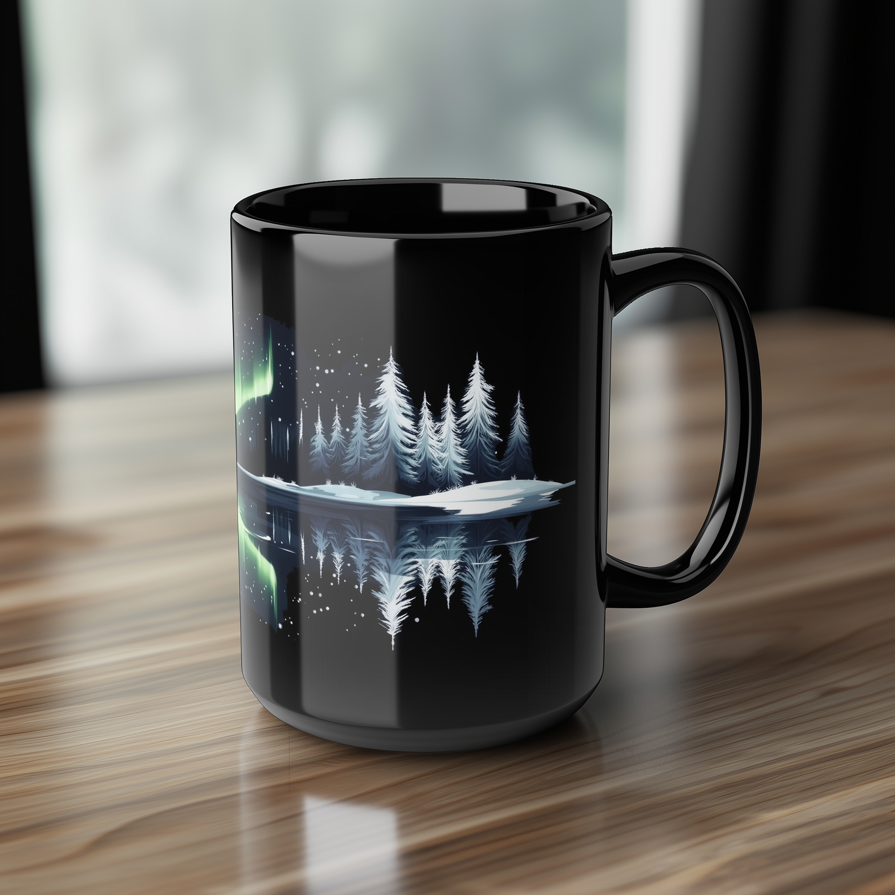 Bring the magic of the Arctic wilderness to your morning routine with a mug from our "Nordic Nights" collection. Featuring a breathtaking scenes of snow-dusted evergreens, serene mountain peaks, and the ethereal dance of the Northern Lights reflected over a tranquil, icy lakes, this design transports you to a world of wonder with every sip. The captivating hues of purple and green lights shimmer against a star-filled sky, evoking the peaceful and mystical atmosphere of the great outdoors.