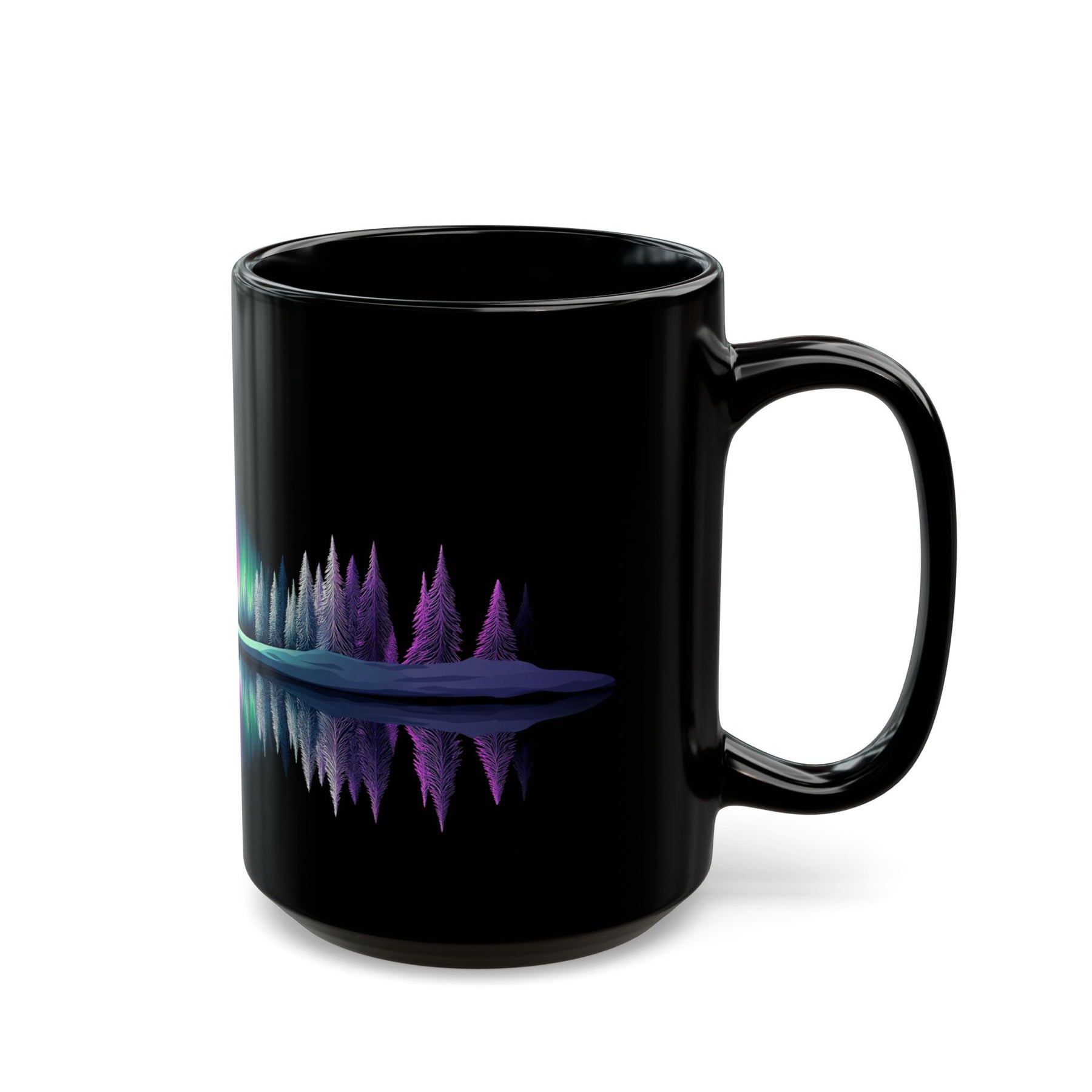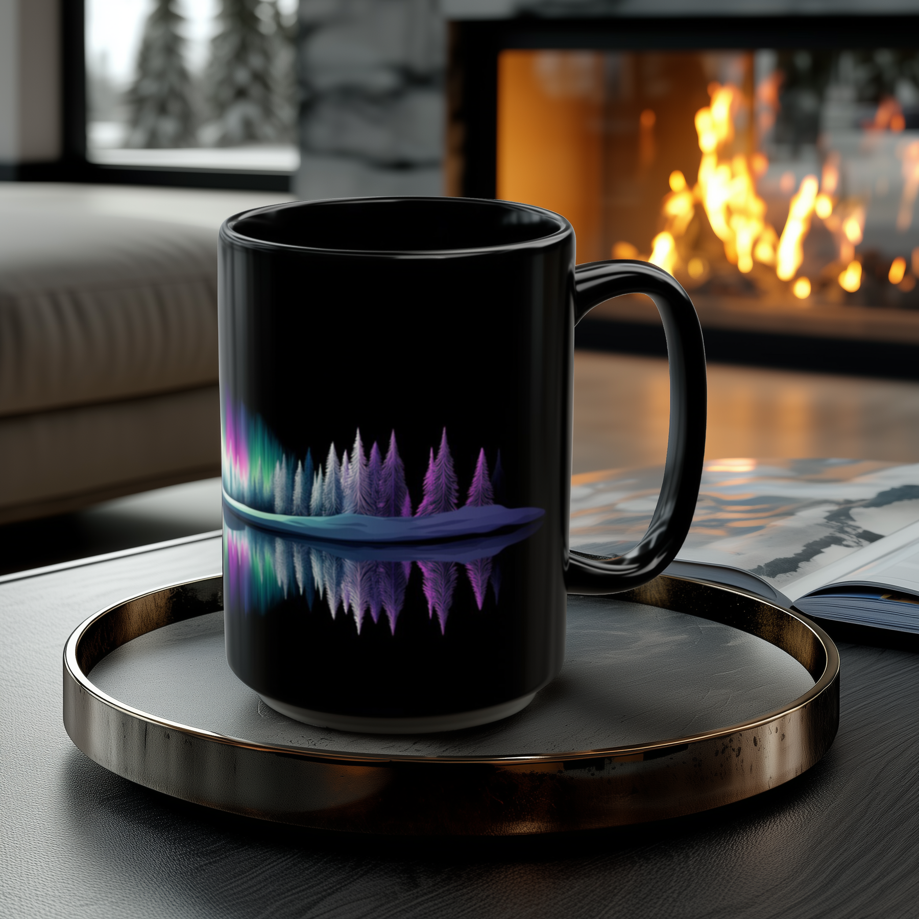 Bring the magic of the Arctic wilderness to your morning routine with a mug from our "Nordic Nights" collection. Featuring a breathtaking scenes of snow-dusted evergreens, serene mountain peaks, and the ethereal dance of the Northern Lights reflected over a tranquil, icy lakes, this design transports you to a world of wonder with every sip. The captivating hues of purple and green lights shimmer against a star-filled sky, evoking the peaceful and mystical atmosphere of the great outdoors.